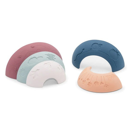 A tactile and sophisticated version of this playroom classic. 5 stacking rainbow arches made from food-grade, dishwasher-safe silicone. Earth Colours Model.