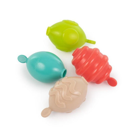 Big beads of assorted textures and colours, made of bioplastic derived from sugar cane, for children to string together. They have been designed for little hands and can be used by children with special needs thanks to their sizes, textures and colours. They snap together when gently pressed to form a chain, making playing time a really fun experience.