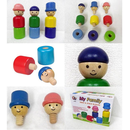 A quality colourful wooden set of interchangeable wooden 'people'. 9 piece set. Toddlers enjoy screwing and unscrewing the different body parts. Great for enhancing fine motor development. Also a lot of fun.