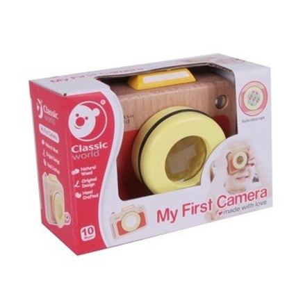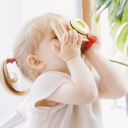 Smile and click! Your baby will love pretending to take pictures just like real shooting! With a vintage body, a rotating kaleidoscope lens as well as a shutter button, this wooden camera from Classic World will gain your baby’s affection!