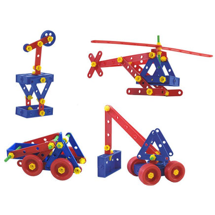 With this construction set, every young engineer can build objects from the real world. The set is made of durable plastic and includes a spanner, screws, pulleys, nuts, etc. To encourage children´s abilities, 6 large sheets detailing the construction of various designs are included. Caracteristics: 74 pieces 6 worksheets