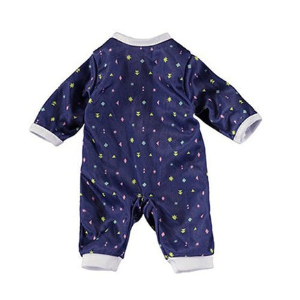 Blue coloured one piece doll suit, suitable for soft or plastic dolls 30cm to 40cm doll. Easy-to-use velcro closer.