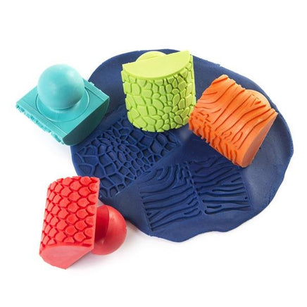 These Educational Colours Easi-Grip Animal Pattern Stampers will keep children entertained for hours and encourage creative pattern activity! Made from soft rubber, with bug chunky handles they are ideal for young children's hands to grip. Rock out animal prints or stamp out fun designs using paint, clay, dough, coloured sand or stamp pads. Set of 4 different animal patterns, including snakeskin, leopard print, stipes and scales.