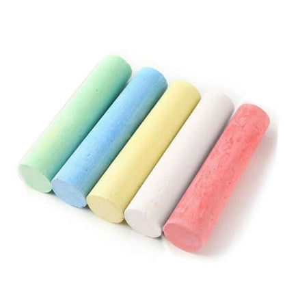 A tub of jumbo footpath chalk. 5 different colours red, yellow, blue, white and green. Comes in a plastic storage tub.
