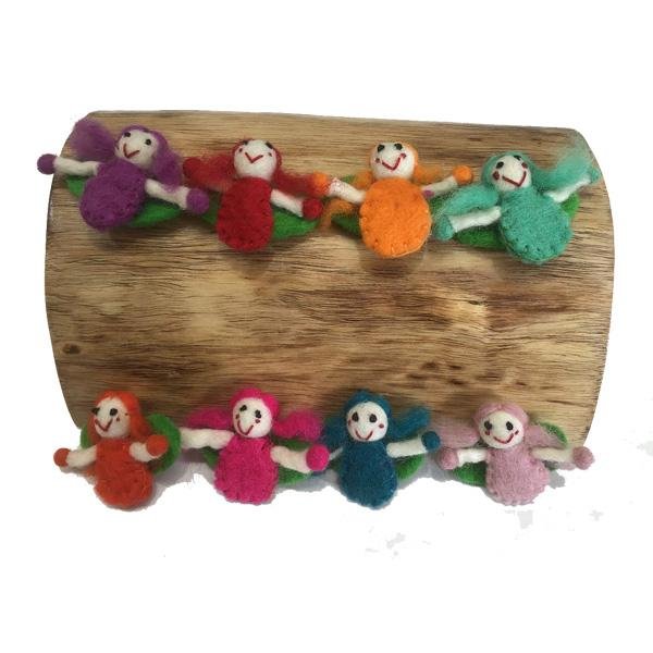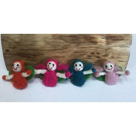 An adorable set of 4 mini fairies, hand made in Nepal using local felts. Each fairy measures 5.5cm wide by 5cm tall.