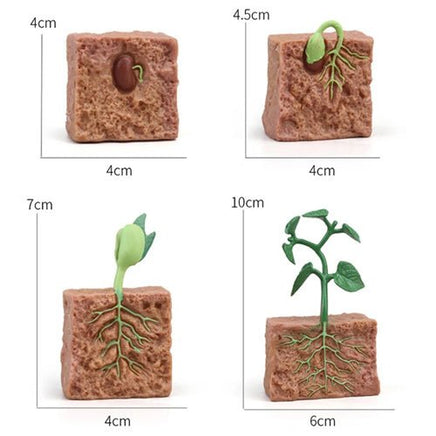 Life Cycle Figurines & Cards Set - Bean. A set of 4 separate figurines and 4 matching cards, depicting the life cycle of a bean.