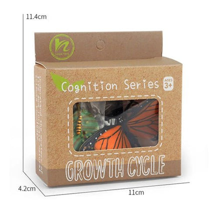 Life Cycle Figurines & Cards Set - Butterfly. A set of 4 separate figurines and 4 matching cards, depicting the life cycle of a butterfly. Adult butterfly measures 9cm x 6cm.