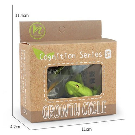 Life Cycle Figurines & Cards Set - Frog. A set of 5 separate figurines and 5 matching cards, depicting the life cycle of a frog. Adult frog measures 5.5cm x 5cm.