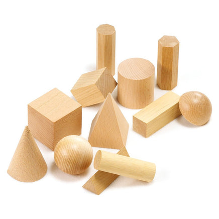 Invaluable classroom tool for demonstrating geometric principles. These smooth, hardwood sets enable students to explore shape, size, pattern, volume and measurement.