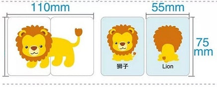 A set of 32 (16 pairs) cards that depict 16 types of animals as a matching pair. Cards also display English text and Chinese characters. A wonderful tool for developing reading skills or just as a 'puzzle' matching activity.