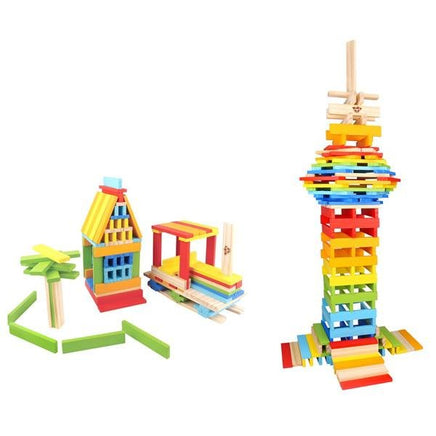 150 piece coloured wooden building planks. Perfect for building towers, towns, castles and more. Building guide included. Building with City Blocks is simple: stack one block on top of another: their specific size and shape and weight allows building that is simply not possible with other building toys.