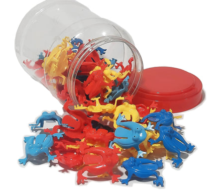 Leap into fun with this colourful set of 48 jumping frogs, neatly packed in a plastic jar. Featuring vibrant red, blue, light blue and yellow frogs, this engaging toy is perfect for sparking imagination, building fine motor skills, and encouraging social play.