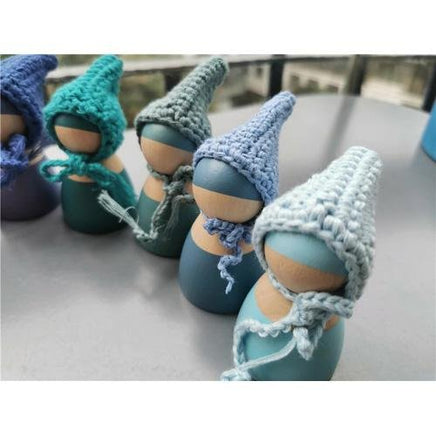 A set of 12 wooden pastel 'people' with matching pastel coloured crocheted beanies. These colourful 'people' come in 12 colours with 12 matching beanies. These 'people' feel and look great and children enjoy matching their hats or using them in free play.