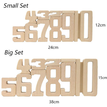 A set of 10 wooden numbers that are used for developing addition skills. The well crafted wooden numbers are built to scale to facilitate addition skills. For example: the 6 is twice as tall as the 3, the the 6 on top of the 4 is the same height as the 10. The largest number (10) is 15cm tall.