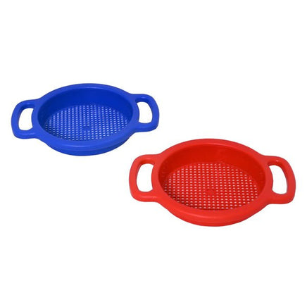 A sturdy sand sieve in bold primary colours. Diameter 16cm.