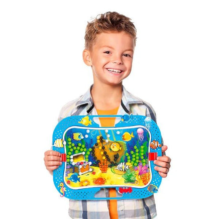 The classic Quercetti pegs in a colourful version featuring the underwater world. The toy includes pegs of different colours and diameters to be inserted into various scenes of the sea floor, and plenty of stickers and shapes of fish, seahorses, crabs and other sea creatures to recreate a sea world.