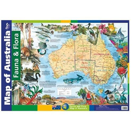 Australian flora & fauna chart measures 50cm X 74cm. Excellent presentation using delightful graphics of our wonderful fauna and flora. Information on various aspects of our culture, places of interest, fauna and flora, cities etc.