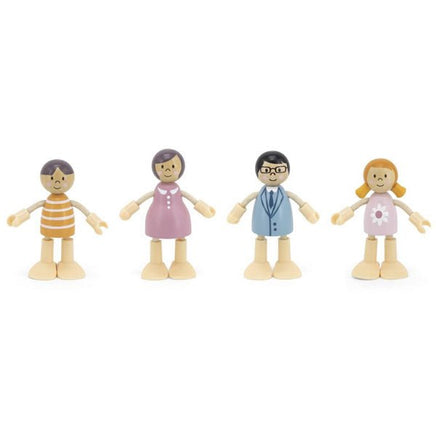 Doll Family - 4 members. All with bendable wooden arms and legs. 12 cm high (adults).