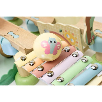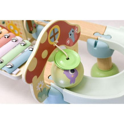 The My Forest Friends Ball Drop Track Set from Tooky Toy is delightful set featuring a captivating rolling ball tower that promises endless fun for your little ones. Simply place one of the four colourful wooden balls at the top and watch as it spirals down, creating a mesmerizing journey. As the ball descends, it crosses the xylophone bridge, producing charming musical notes, hits a cymbal, and tumbles down the stairs before finally turning around to land back at the base of the tower.